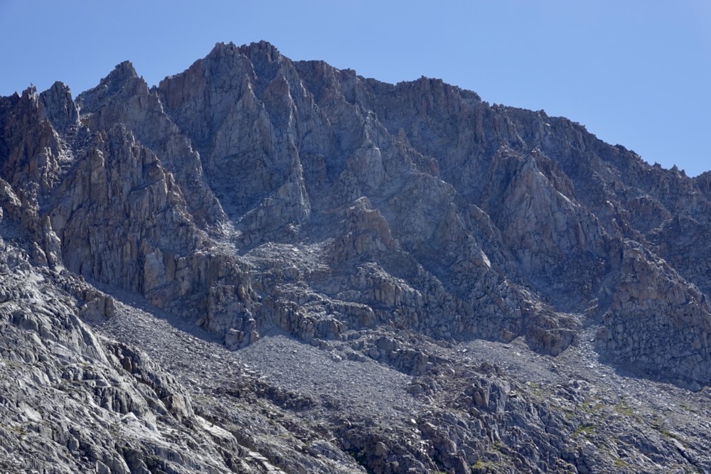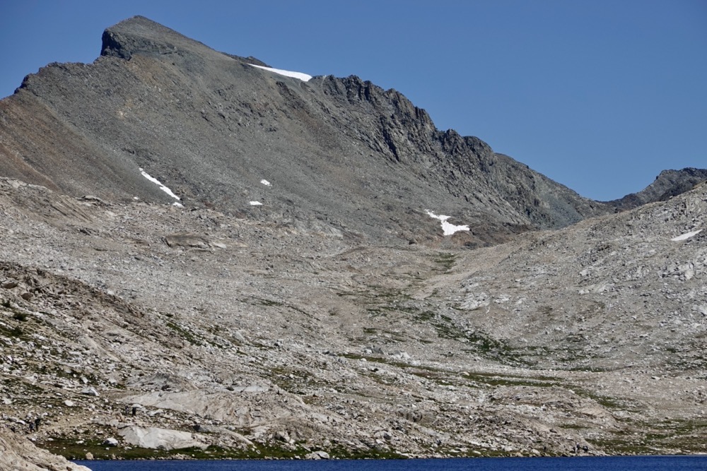 The push up to Wanda Lake was tougher than either of us remembered, and we occupied ourselves by making up names for the mountains around. Reclining Grizzly Peak and Oreo Ridge were memorable. We also found it odd that most summits are named after men, usually white explorers, while a whole lotta lakes are named after women. I tried to think of a single Sierra peak named for a woman, but came up blank. I know they’re out there, but my mental encyclopedia was delinquent in this regard.