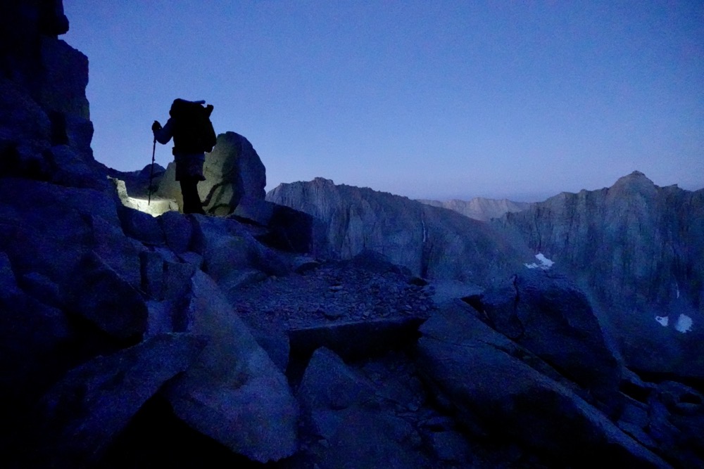Above blinked the headlamps of those ahead. Some were already far along the crest, well into the final push, less than 30 minutes from topping out. Others were zig-zagging up the slope ahead of us, following the switchbacks to the junction at Trail Crest where the trail split. Left to the summit, right to the Portal. Behind us were the rest of the stragglers, too smart or too scared to seek the summit sunrise. All appeared to move slowly, either from the vast scale that shrunk us to ants, or because the darkness stretched time.