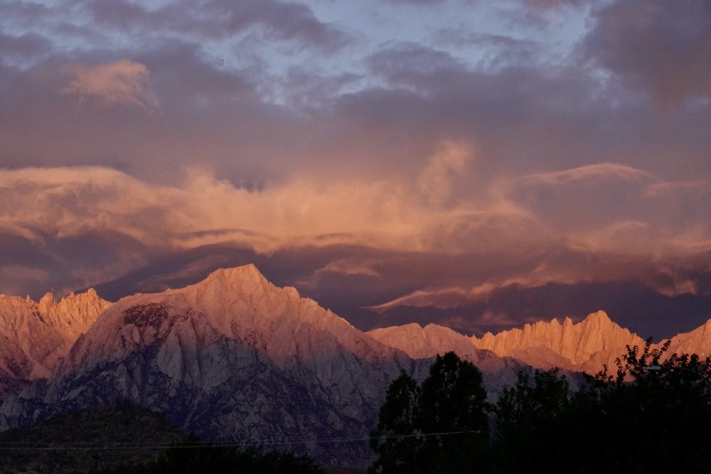There were clouds above the Sierra Crest the next morning. They were the first I’d seen since the day Flower Power and I crossed Selden Pass, and they looked mean. Arthur and I stood at the skatepark behind McDonald’s, watching the spectacular sunrise unfold, more silence than words filling the hour we lingered. With the forecast calling for potential snow up there, it was fortuitous that Flower Power and I weren’t in the mountains anymore. Yesterday was cold enough, and it was worse today. Yet from here, safe on the valley floor, this view was one of the best I’d ever seen.