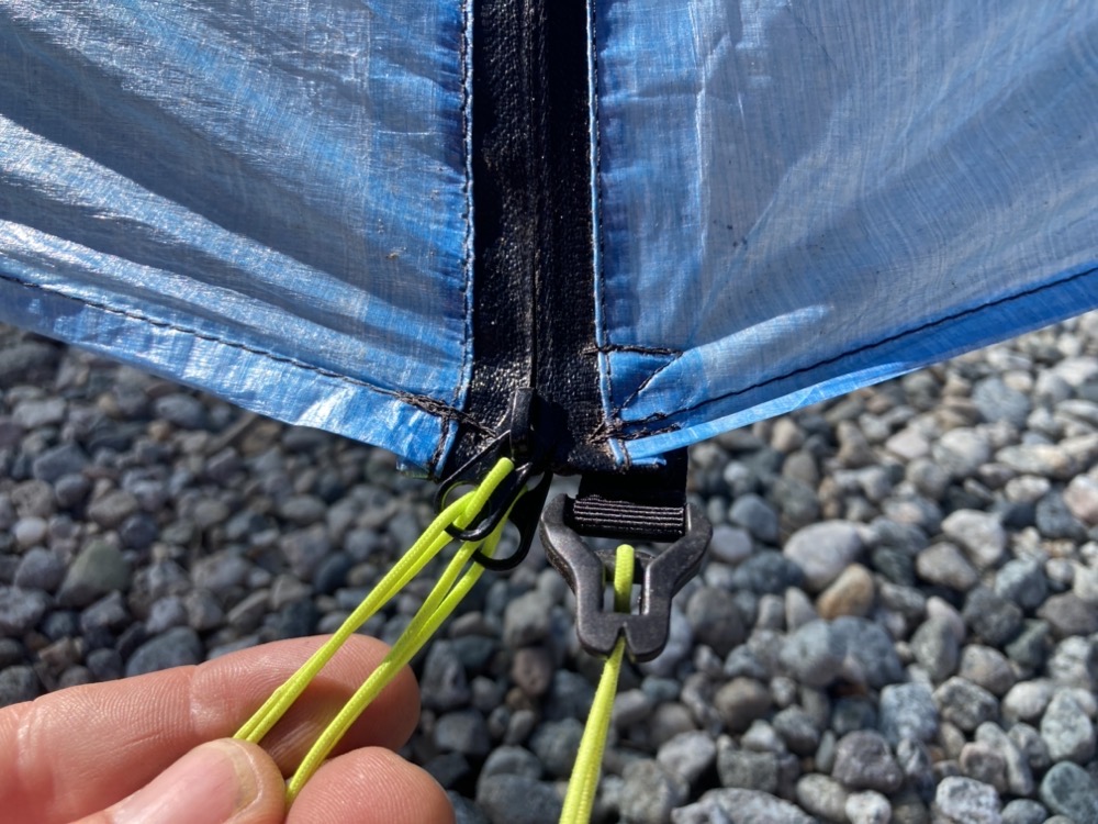 However, I’m not sold on a couple of the updates, mainly related to the addition of zippers on the vestibule doors (pineapple). Compared with the og toggle closure that Zpacks uses on many of their tents (mushrooms), I’ve found that the Free Zip zippers decrease versatility while adding weight and complexity. Sure, continuous zippers are better for weatherization than a single toggle, but I’m not convinced this benefit is worth it. My main gripe with this system is losing the ability to furl both halves when the vestibule is staked out. The staking loop is permanently sewn to one side, requiring the hiker to stake/unstake it every time it is closed/opened. For example, if you set up camp with the vestibule fully open, then you’ll need to add a stake if it starts raining in the middle of the night and you want to close the storm doors. Or if you have one side open for ventilation, there is no way other than spinning the entire tent to counteract a shifting wind. While this is a small nitpick, it’s a functional step backwards, and I prefer the old way.