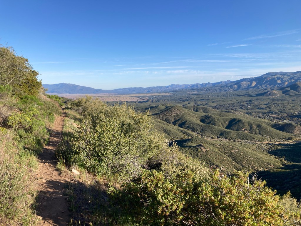 Eventually, the trail flipped over the ridge and turned a corner, finally revealing the terrain ahead. Everything was a long way off. Wild to think that I would be over there, across the wide valley, by the end of the day. But first, I needed to get down out of these darn San Felipe Hills, yet the trail seemed unwilling to do so. Look, everyone, the PCT is great and all, but it took miles to gradually descend and swing around to the other side of a small drainage. A bird could have flown the distance in ten seconds. I never thought I’d say it, but I could have used a smidge of the directness that makes the AT so difficult. I wasn’t here to pad my mileage stats. I just wanted to get to town. My socks were the stiffness of cardboard with the grit of sandpaper. Bucket laundry was calling.