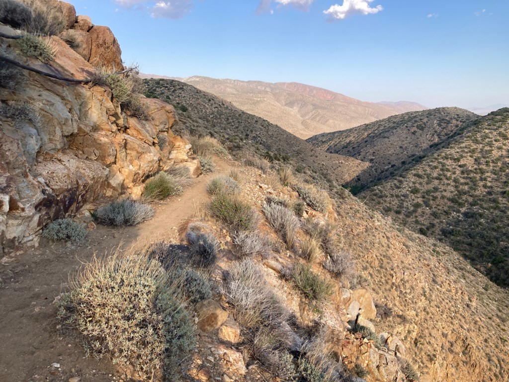 She was happy to let me set the pace, and I could tell that, like Punisher, she hadn’t had many conversations so far on the PCT. Pretty quickly, she put the pieces together of who I was, partner of SpiceRack, who hiked the ECT in 2022 and is friends with her friend, Sparkle, whom we met on the ECT in 2023. Peg Leg and I are also both a pretty big deal on TheTrek.co, so there was that connection too. With my identity accounted for, we had a lot to talk about. Mostly, I just hung on, trying to hike fast and ignore my burning heels. I did learn that Peg Leg runs on chocolate milk when she can get it, and that it is okay, and probably a good thing, to wash my stinky backpacks.