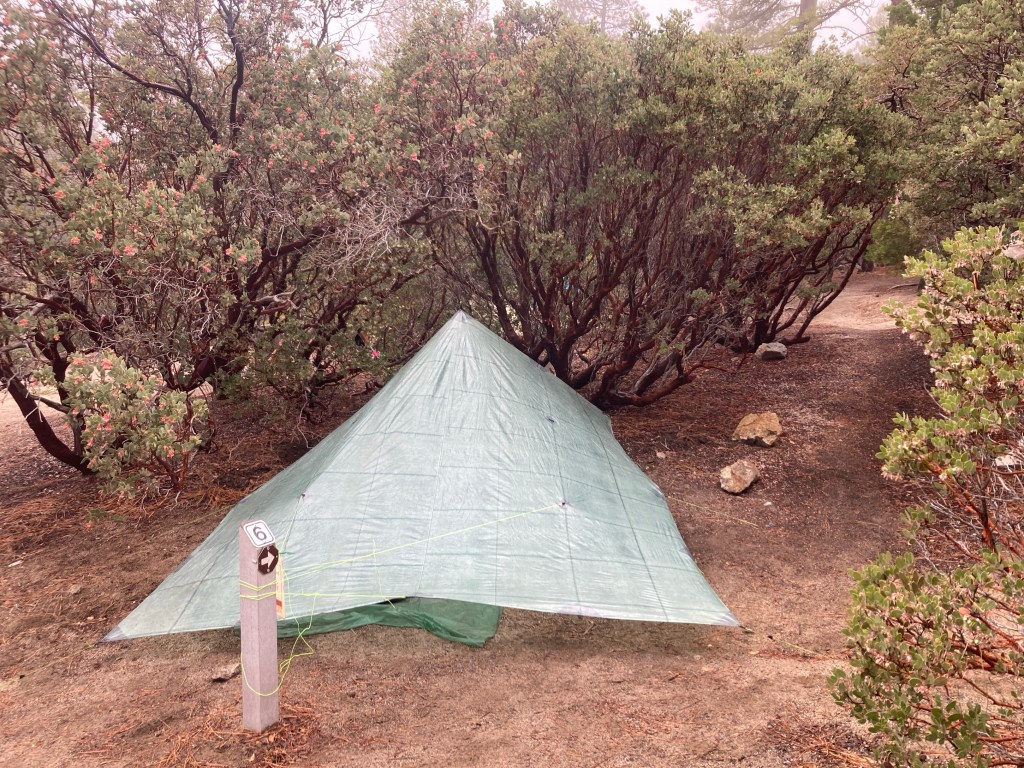 It was just a few easy miles to Saddle Junction, where I temporarily left the PCT down the side trail to Idyllwild. Soon, I was back in the drizzling cloud, but at least I knew now what was above. Well actually, this unfortunately did nothing for me. I still needed to exist in this unseasonable weather, and as I pitched my tarp in the state park campground, I wished for a roof and walls. When this small mountain town inevitably shut down at just 6pm, was I really going to lie in bed for twelve hours? Hmmm, I hadn’t quite thought this through.