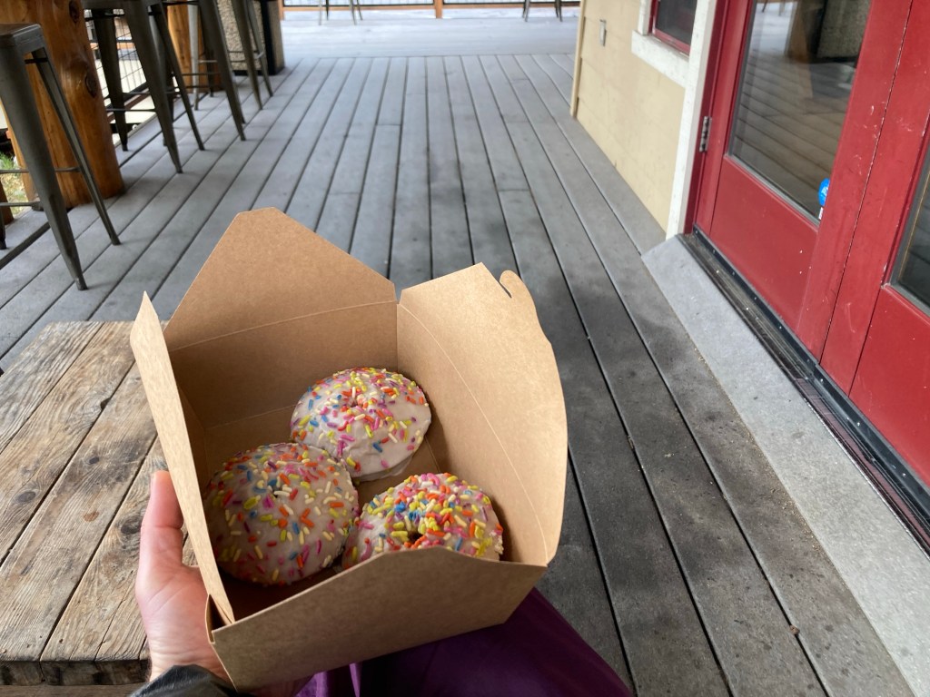 But it wasn’t all bad. When the coffee guy finally locked up, he let me have my pick of the leftover pastries. I took the three vegan donuts. One for now, one for breakfast, and one for lunch. Resupply complete!
