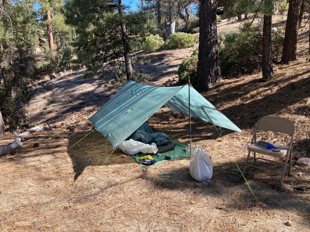 Back at my camp, I made small and multitudinous hummus, tomato, and deli slice sandwiches as my appetite requested, while doing internet chores on my phone. The warm breeze rushed through the pine, and squirrels chattered. I moved in a big circle around my tarp, following the shade as the hours passed.