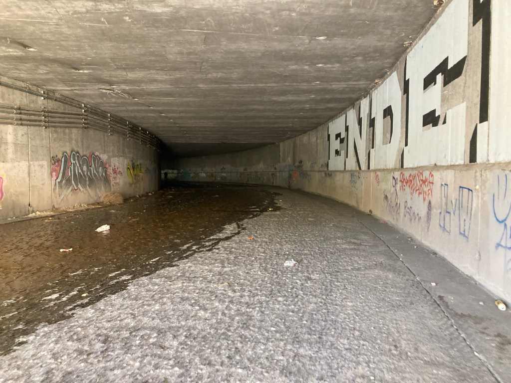 Despite the pain and directional irrelevance, I hobbled down the embankment to the wide concrete underpass. It wasn’t built for hiking, but this was where the PCT continued north without me. The modest flow from the gorge spread to a wide sheen of darkness across three-quarters of the eroded floor. A hiker entered ahead of me, and I watched them disappear into the gloom around the subterranean bend. Then I listened to the footsteps fade, easily drowned out by the rumbling traffic above. I followed a dozen yards to where the shadow started, crossing the threshold for only a second, then quickly stepping back into the sunlight. It’s where I belonged. I didn’t want to walk through that dark tunnel or find out what lay on the other side. I wanted what was on this side. I wanted the light.